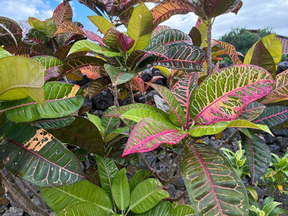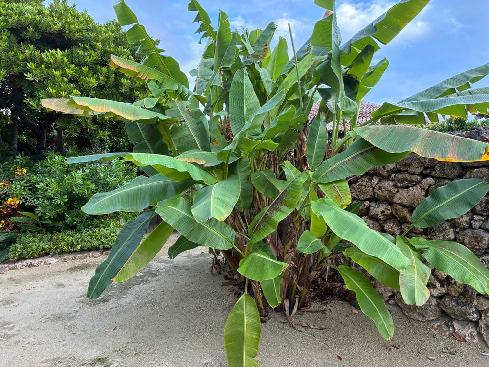 沖縄地生?ホテルの石垣歩いたところにアロカシアっぽいのとストレチアに見えるバナナの木だったりクロトン?がたくさん生えてました🌱
