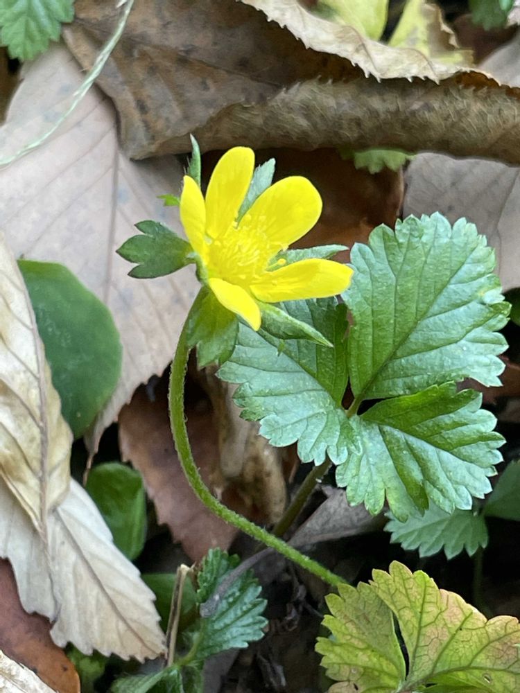 ここ、広がってポツポツ黄色いお花が見えたのです。あれ?って。ほんと、今年はびっくり。後で載せますが春の七草のホトケノザなんて沢山咲いていましたよ。
