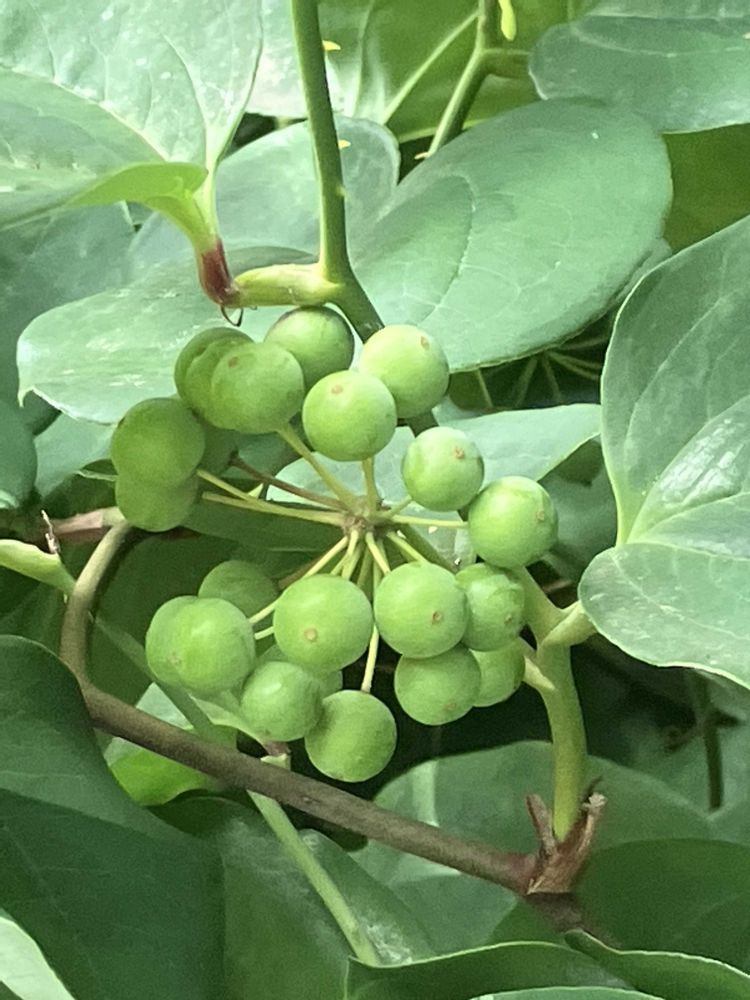 山あいの田舎なので、近くに葉っぱ🌿が有ったのかな〜?🔴🌿