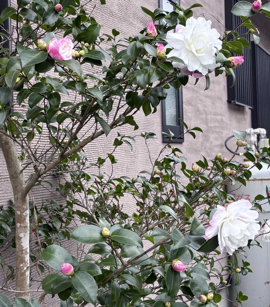 ご近所さんの敷地内で『 サザンカ 』さんがとても、とても綺麗に咲いていました。思わずスマホで『ポチッと』----。😀