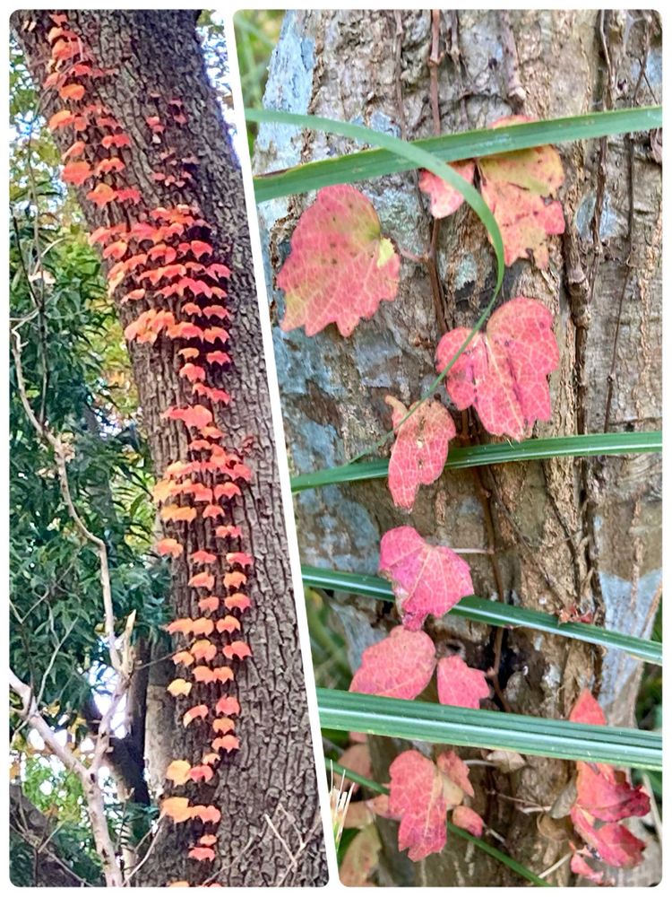 山林に自生し、鮮やかに紅葉する「ツタ」。