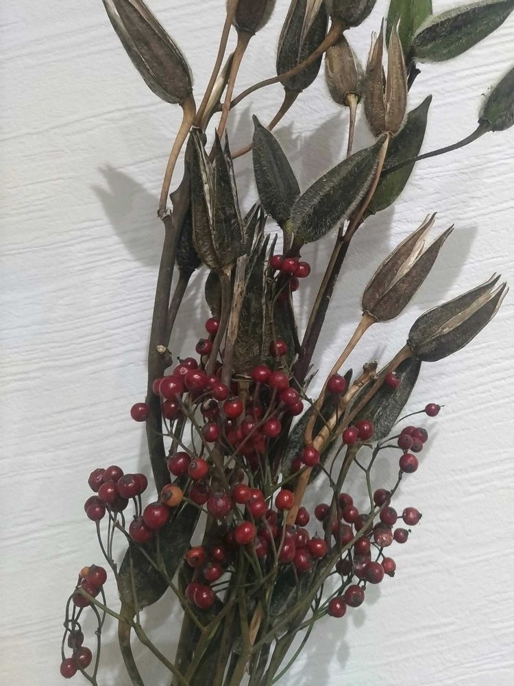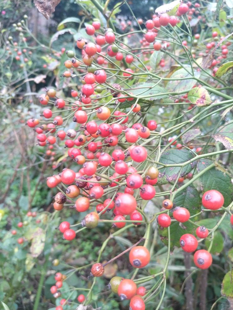 サルトリイバラではないけど庭のローズヒップです。花オクラとローズヒップのドライフラワーにしています。昨日も薔薇の剪定作業。