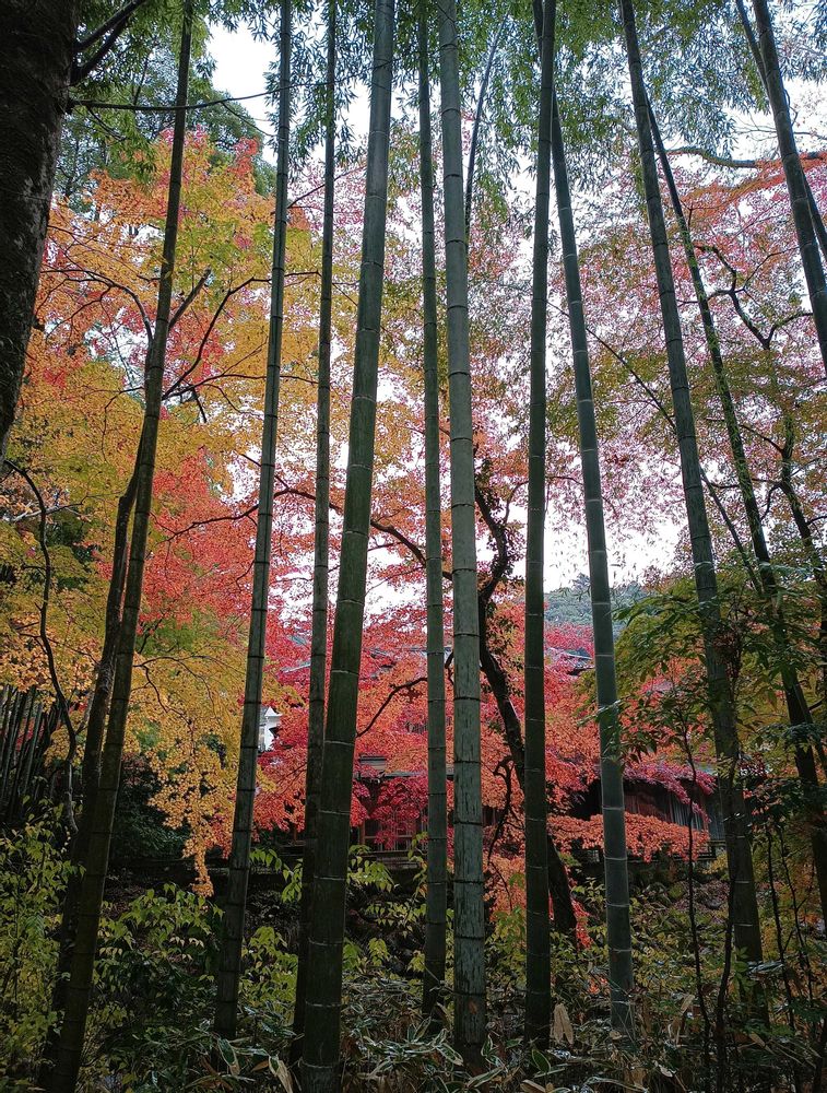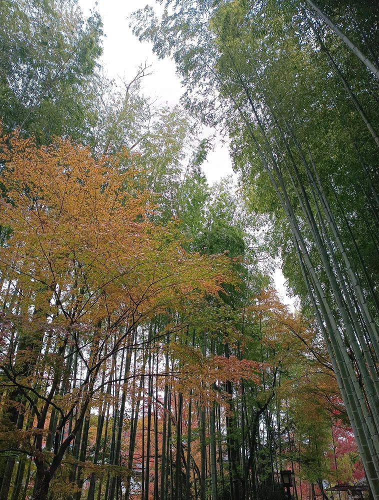 竹林と紅葉の色の対比が素敵ですね✨💓🎶