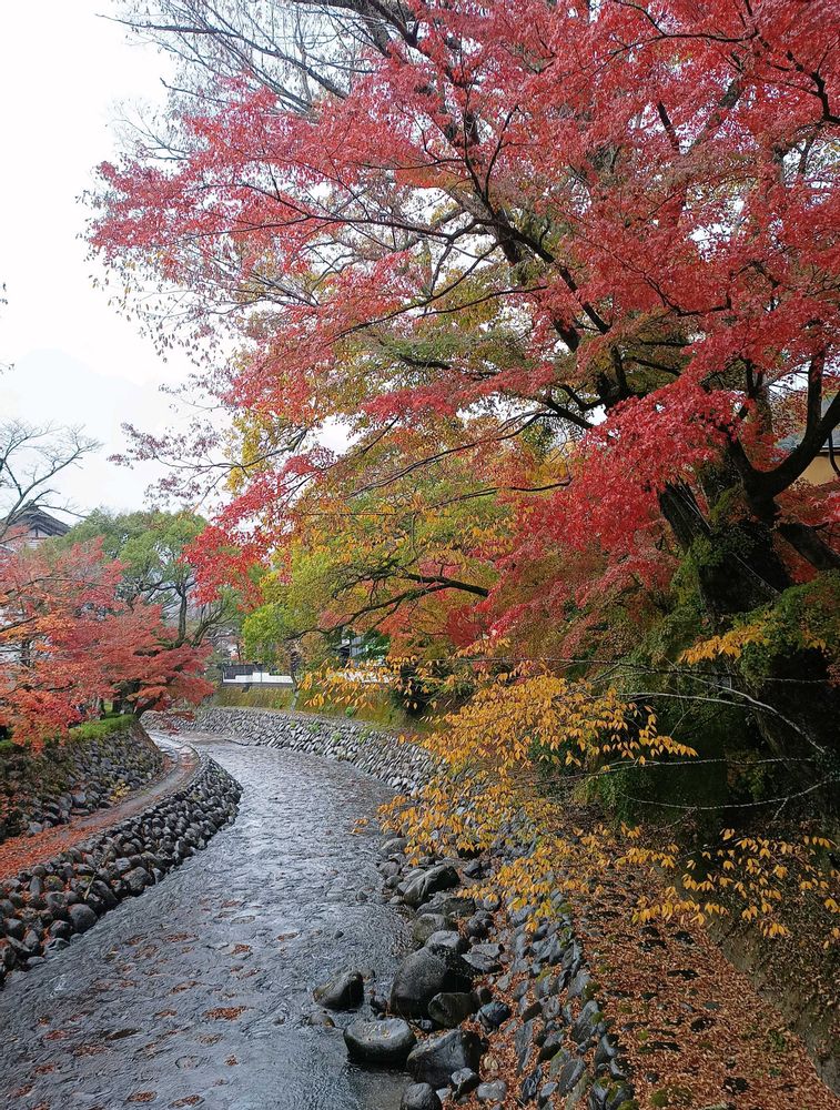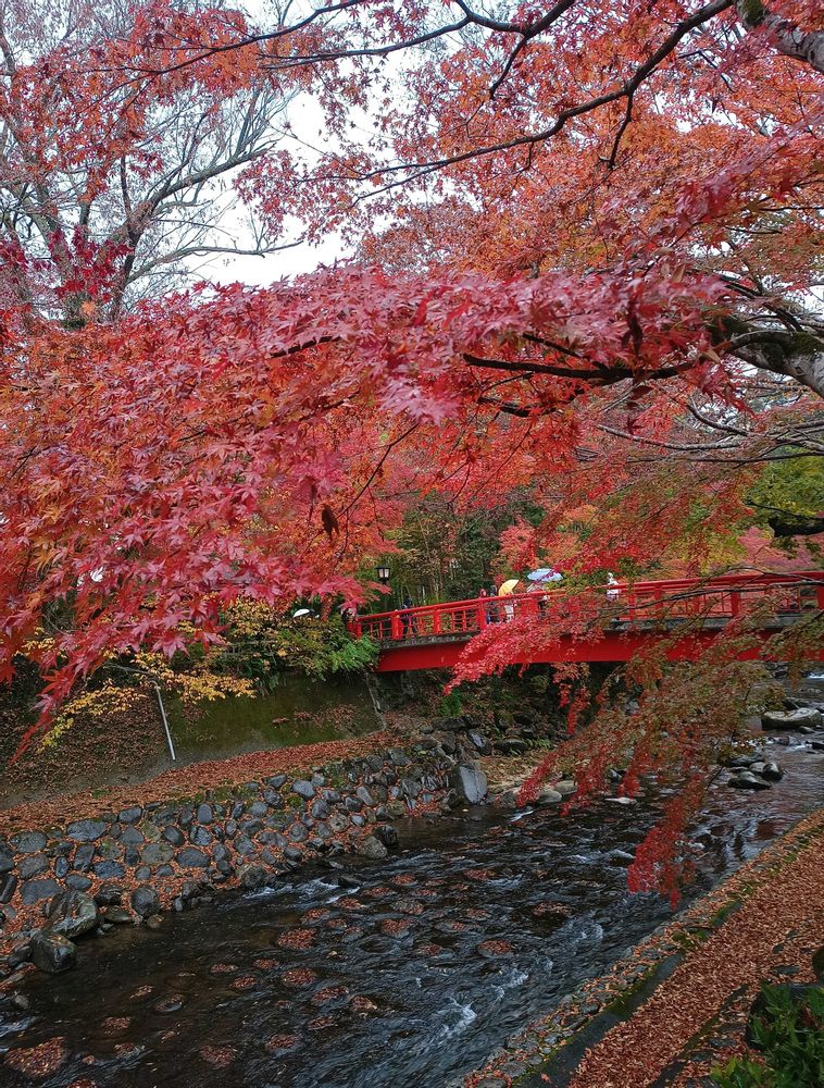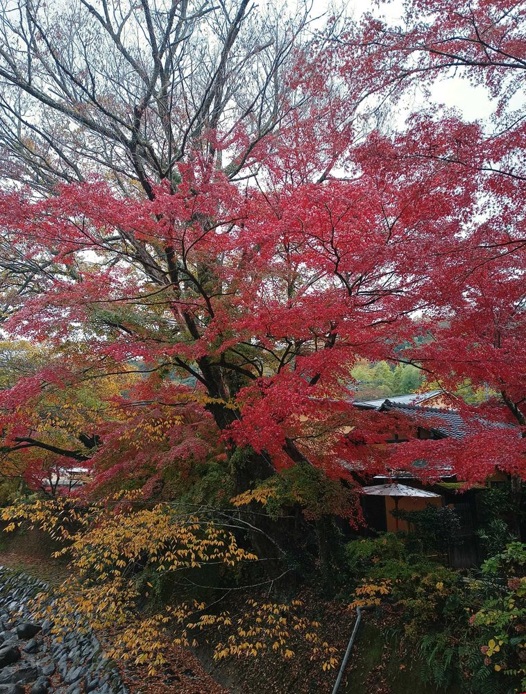 修善寺温泉の竹林から見た赤い紅葉🍁が素敵なんです。