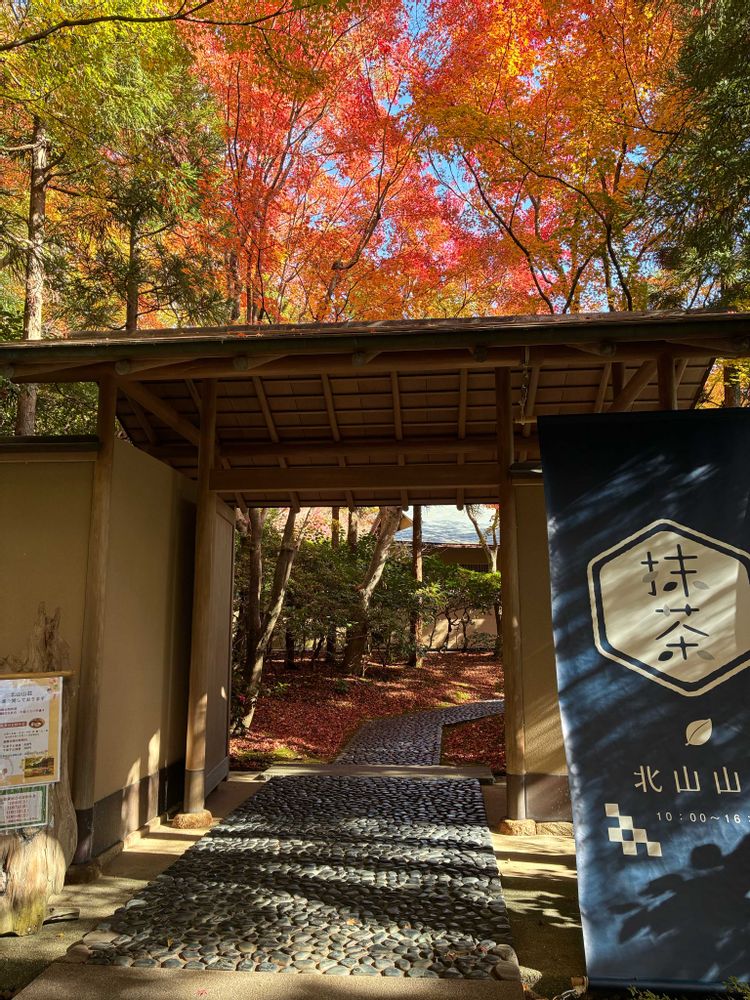 ③園内には、北山山荘という北山杉でできている数寄屋造の山荘の入り口も紅葉が色とりどり美しい🍁