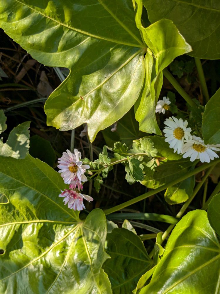 白い小菊がほんのり色づいて…♡ヤツデとのツーショット
