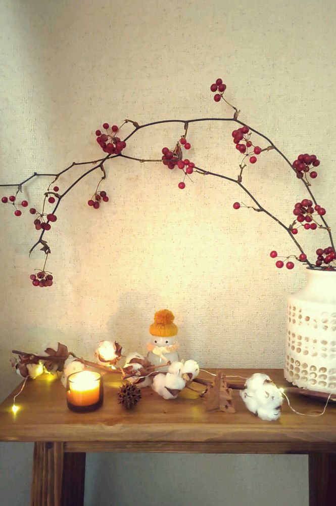 3⃣先日のコットンに小物とキャンドルプラスしたら12月らしくなってきました