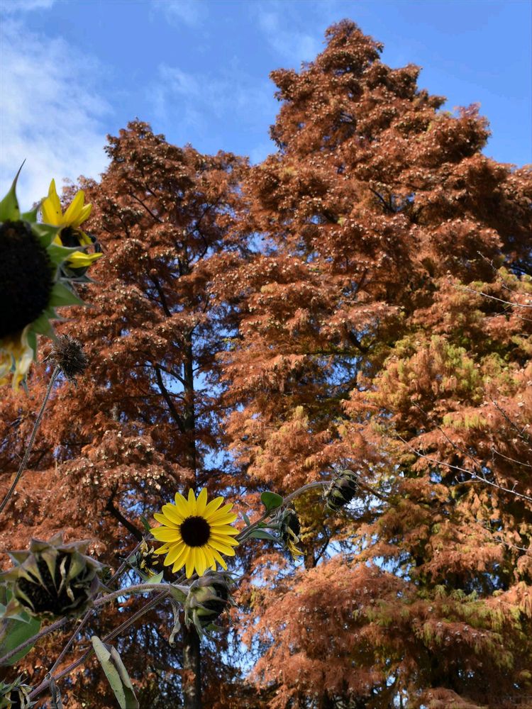 ②ラクウショウと遅咲きすぎるヒマワリ🌻😳