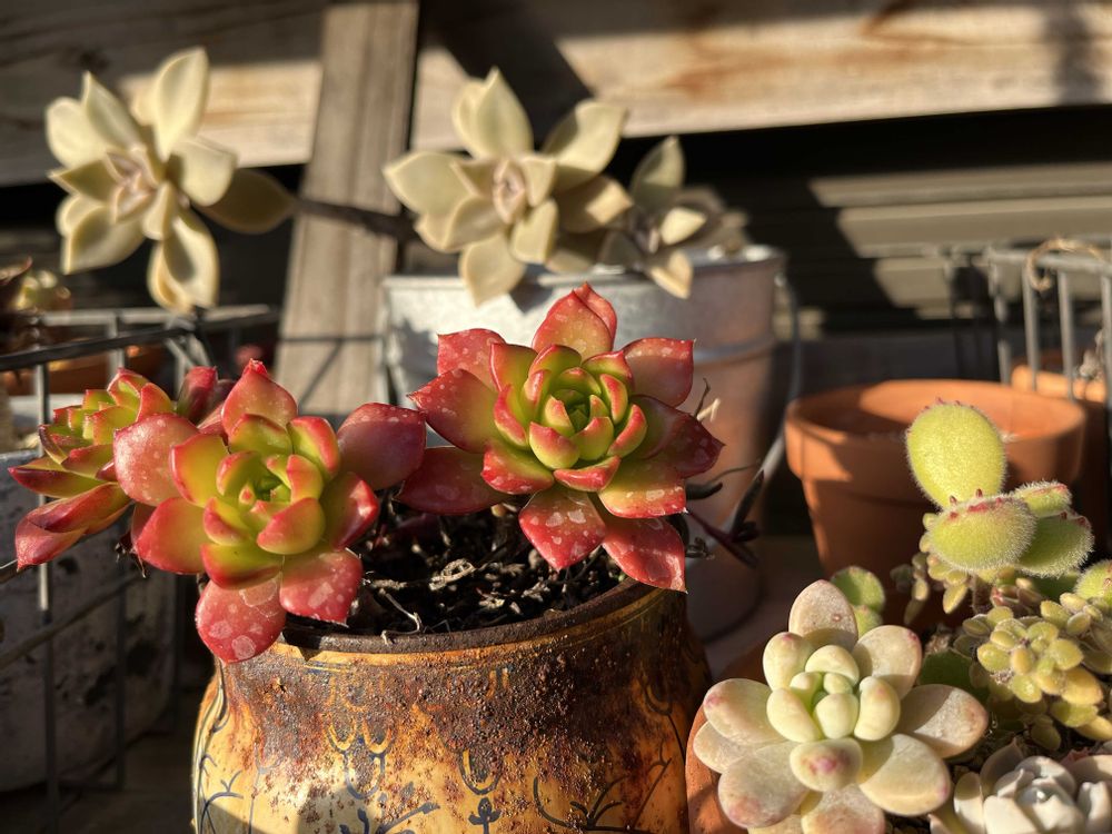 どんより曇りの朝。可愛いミセバヤも明日からの寒波で葉もポロポロ落ちて来シーズンの準備を始めるのかなっ。コロンと出て来る新芽が楽しみです🌱🌱🌱