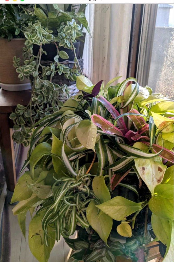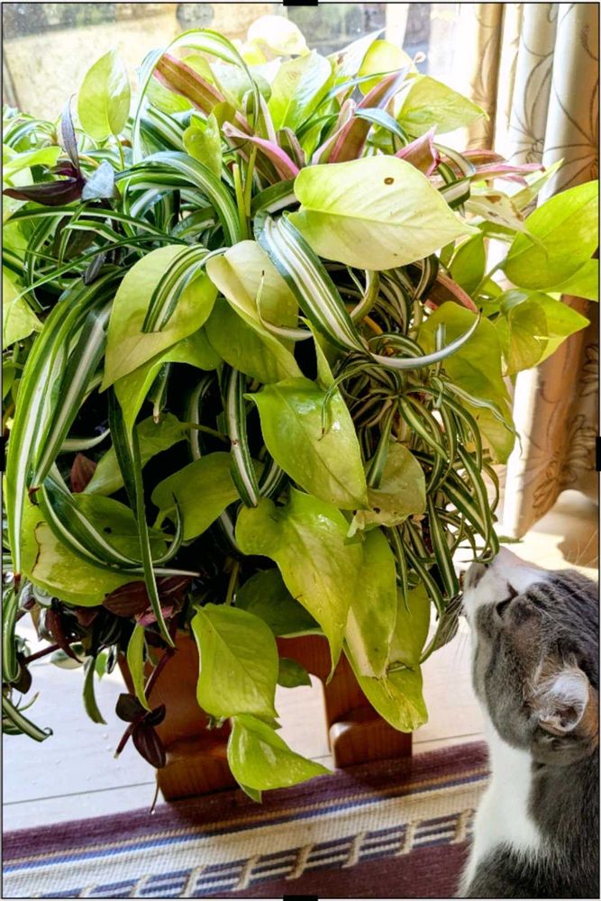 葉っぱが傷んできたので庭から居間に移動しました 観葉植物のハンギングバスケットはいいですね 一年中外でも中でも楽しめます お勧め🥰 違う種類も作ろうかな🤩p3鈴ちゃんもお気に入り(=^・・^=)
