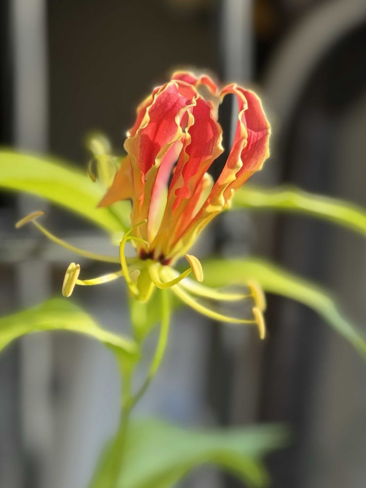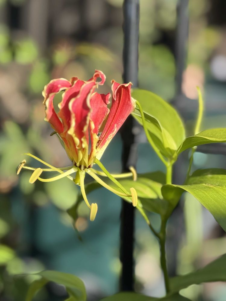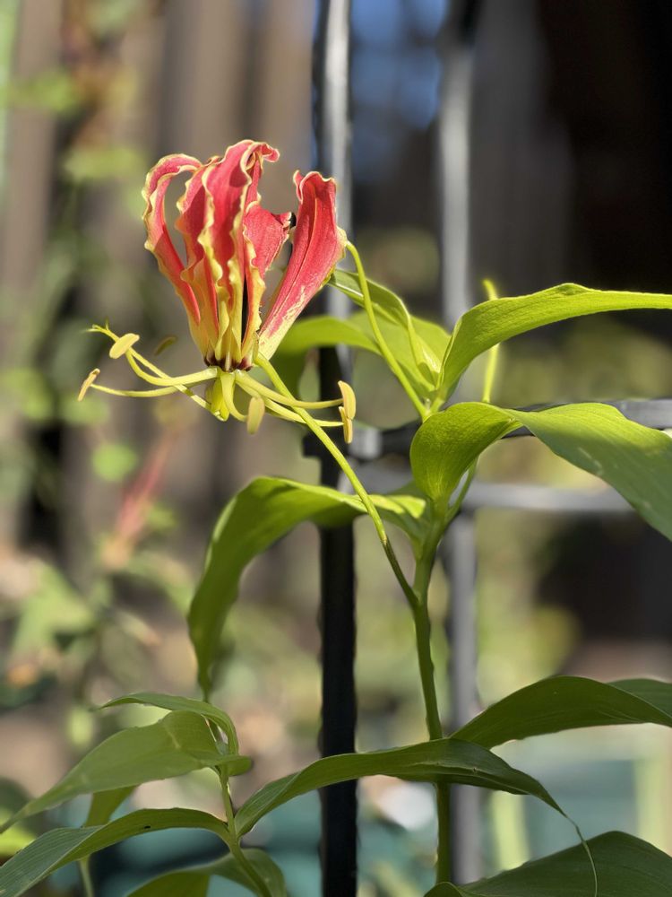 遅れて芽を出したグロリオサに花芽が出来て開花❣️