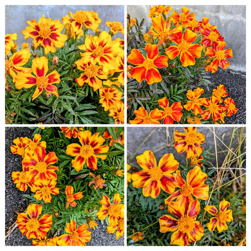 廃業になったパチンコ店の駐車場脇にマリーゴールドだけ、寒いのに沢山咲いてました。🍎🍎🍁🍁
