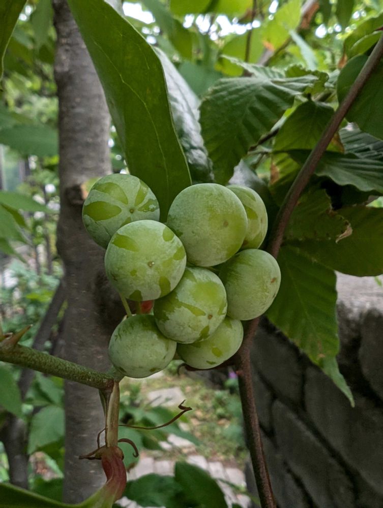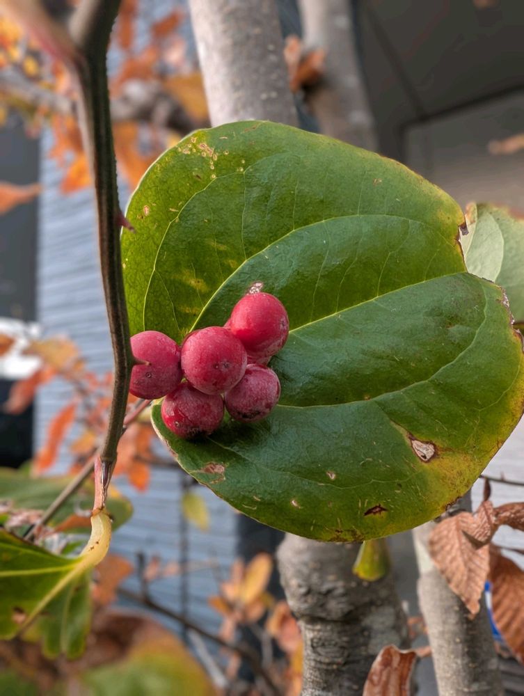 サルトリイバラ。青い実をみて新種の柿かと思ってしまいました😆 クリスマスリースに使う植物だったんですね😊