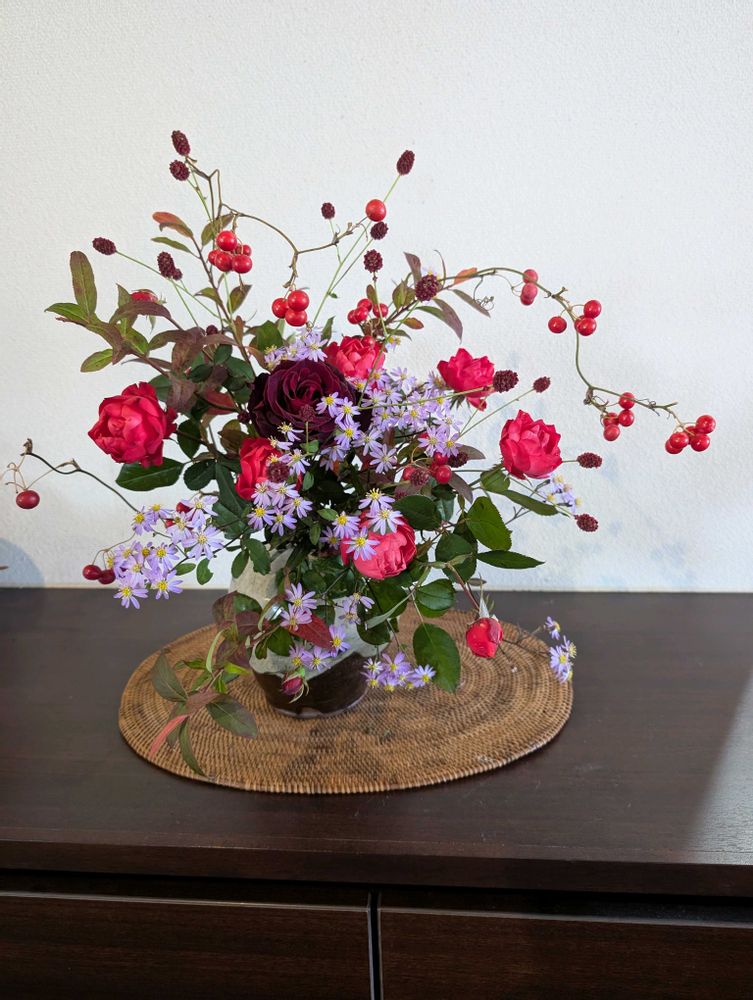 菊の紫と吾亦紅で大人っぽいですね😊💕