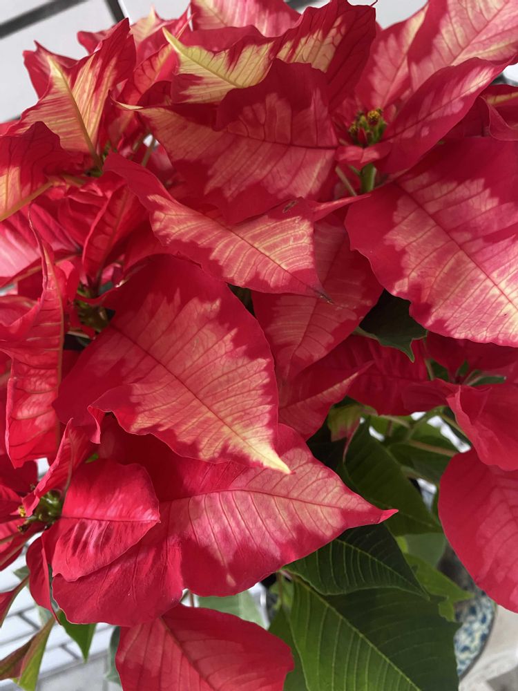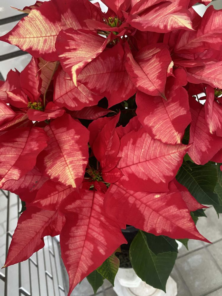 ポインセチアって緑の葉に赤い葉🍁(額?)がクリスマス🎄カラーのように見え、クリスマスにはお似合いのお花❤️ですね🤗💓