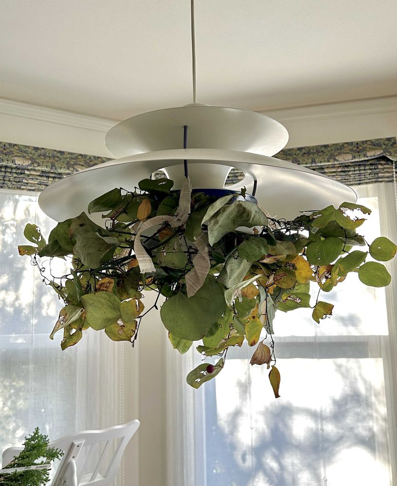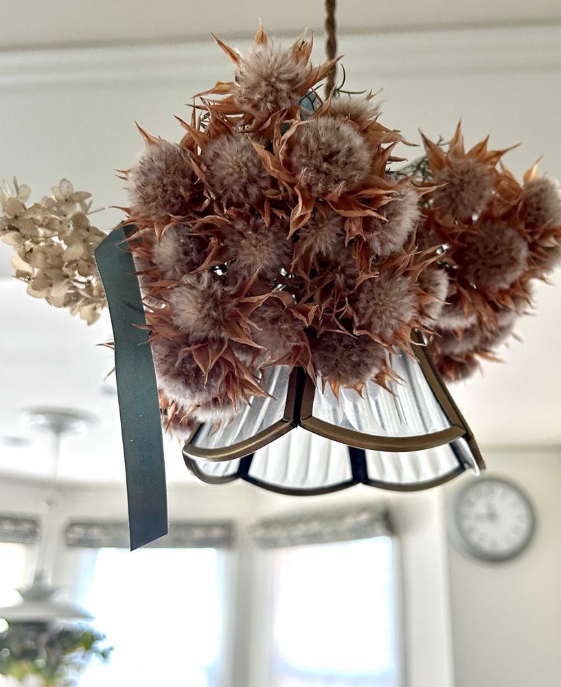 リネンクロスを使ったアレンジに憧れてたので、端切れを使って照明をぶら下げたのですがゴミみたいになっちゃったな。もっとボリュームのある量を使わないとダメみたい🌀