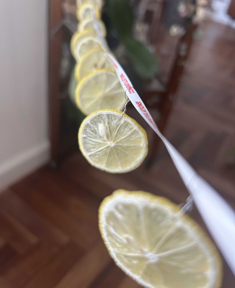 ④これも毎年恒例、庭で収穫したレモンを使ってデコレーション用のレモンスライスを作りました。