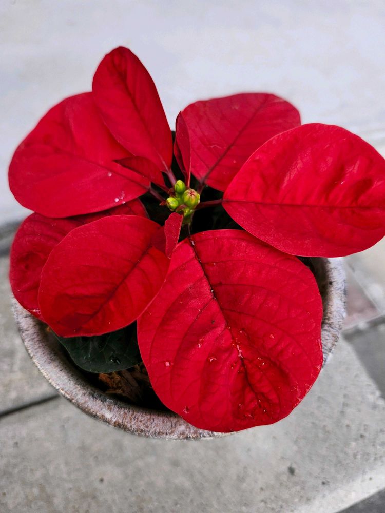 まあるい葉っぱのポインセチア初めてお目にかかりました!可愛い‼️ 普通のポインセチア購入しましたが、毎年枯らしてしまいます。大事にしすぎと言われ外に置いて様子見、こんどは取られないかと😅