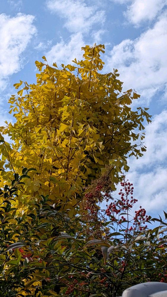 manabeさんのサザンカ,イチョウの黄葉,黄色の菊の投稿画像