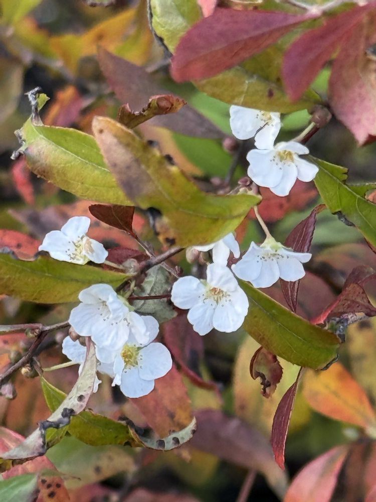 葉が紅葉している中でユキヤナギの小さな花がところどころに咲いていました🤍✨
