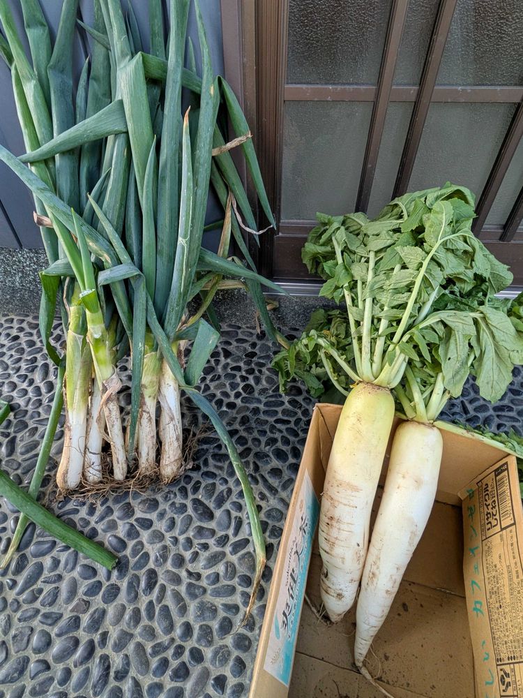 4️⃣帰りにネギと大根もらいました🥰今年は弟ががんばって栽培してました😆感謝です🙏