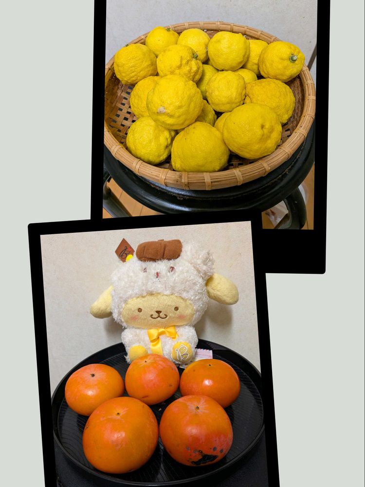 5️⃣ご近所さんより柚子と富有柿を頂きました😘💞ありがたいです🙏小さい柚子はお風呂に入れて温まりたいです😊
