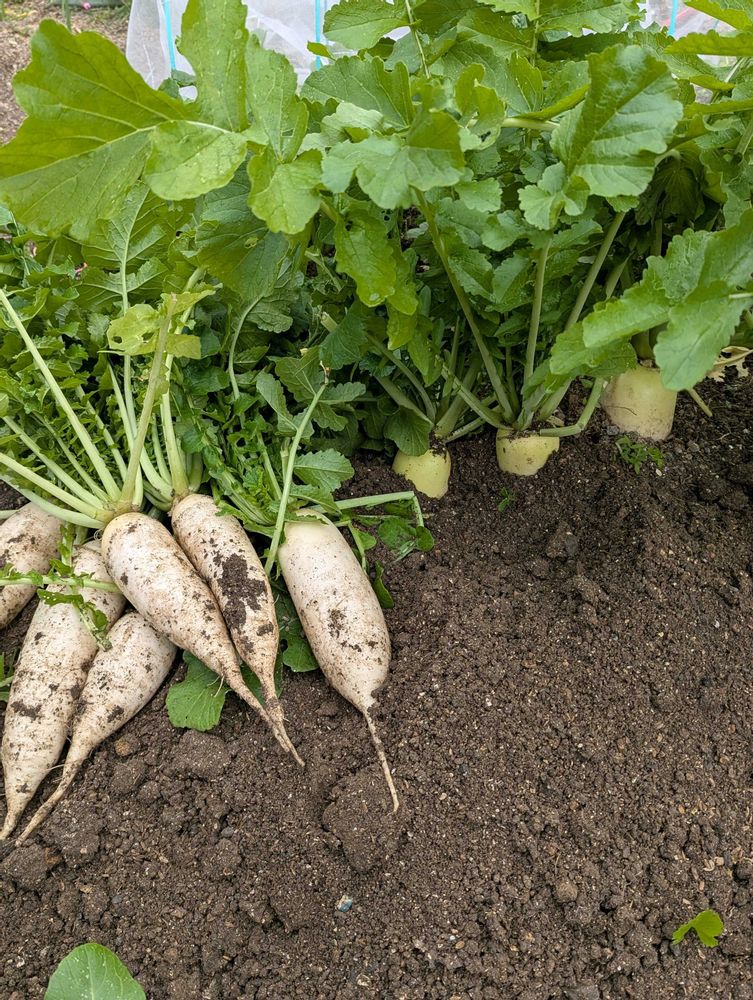 12/2.朝から🍢大根収穫して、畑に穴を掘り、寒く成なる前に貯蔵💪午後からは一休み❤️🙇🙋