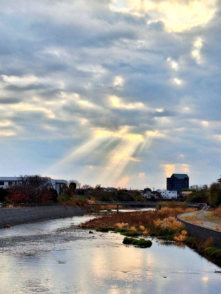 ⑤今朝、井野川に架かる橋を渡った時、天使の梯子が綺麗に見えました🎵😃❇️🪜