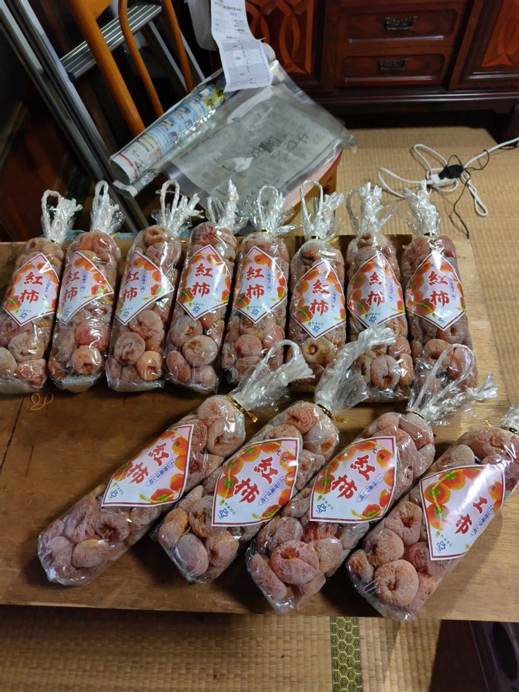 次の工程は、束ねた干し柿を夫が1本ずつセロファンで包んでいきます😉👌