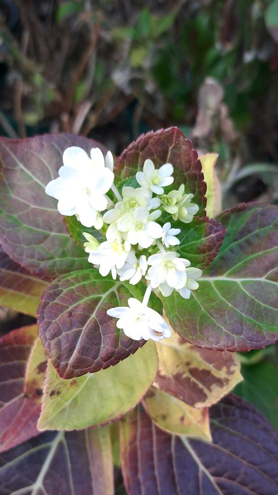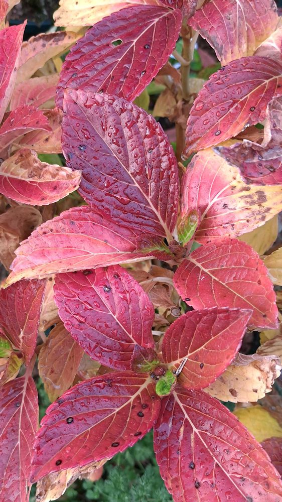 紫陽花の種類によって紅葉も違うし 落葉しているものもあります
