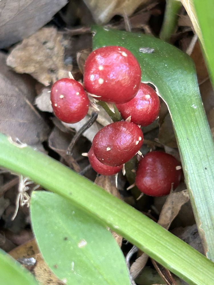 ありがとうございます♡確かこの辺よね…と3人で探しました 緑色の長い葉を目印に落ち葉をかき分けたら、出てきました!