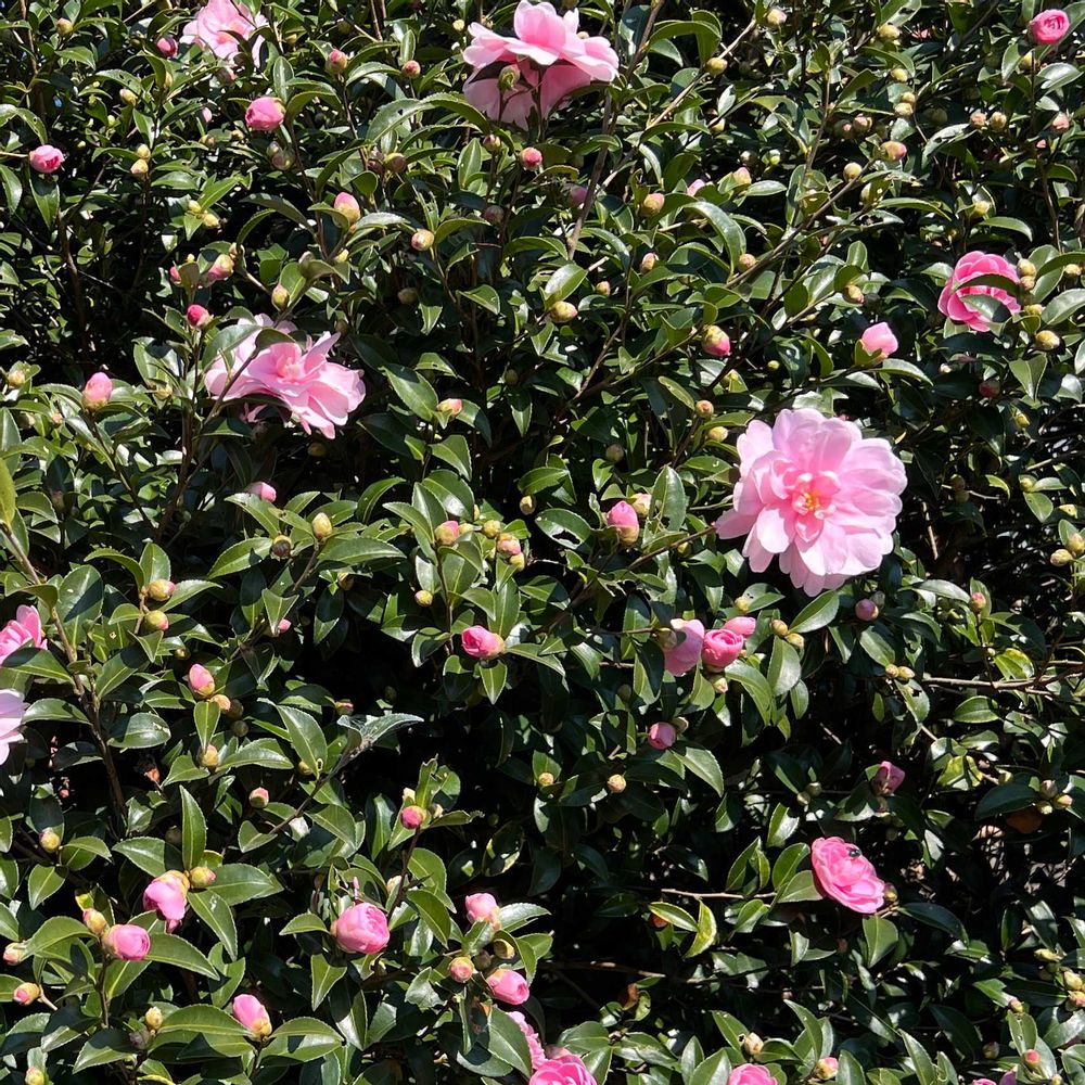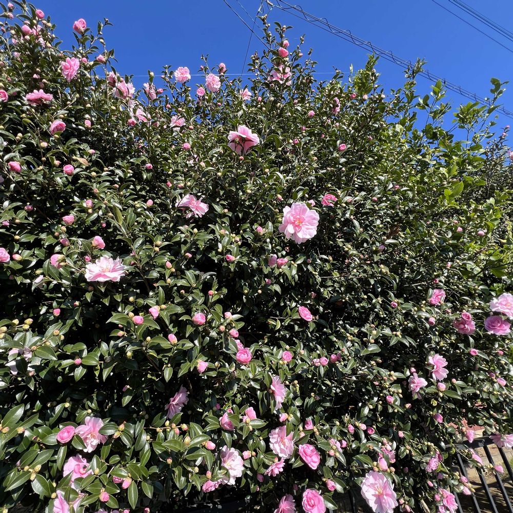 ピンク色の姫ツバキか、姫山茶花の生け垣のような気がします。