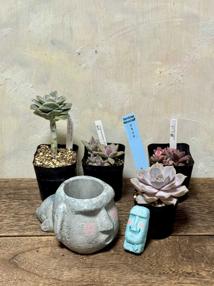 4枚目は、さきゅまるさんからお迎えした多肉チャンとfukumomoさんのモアイ🗿セット🌿