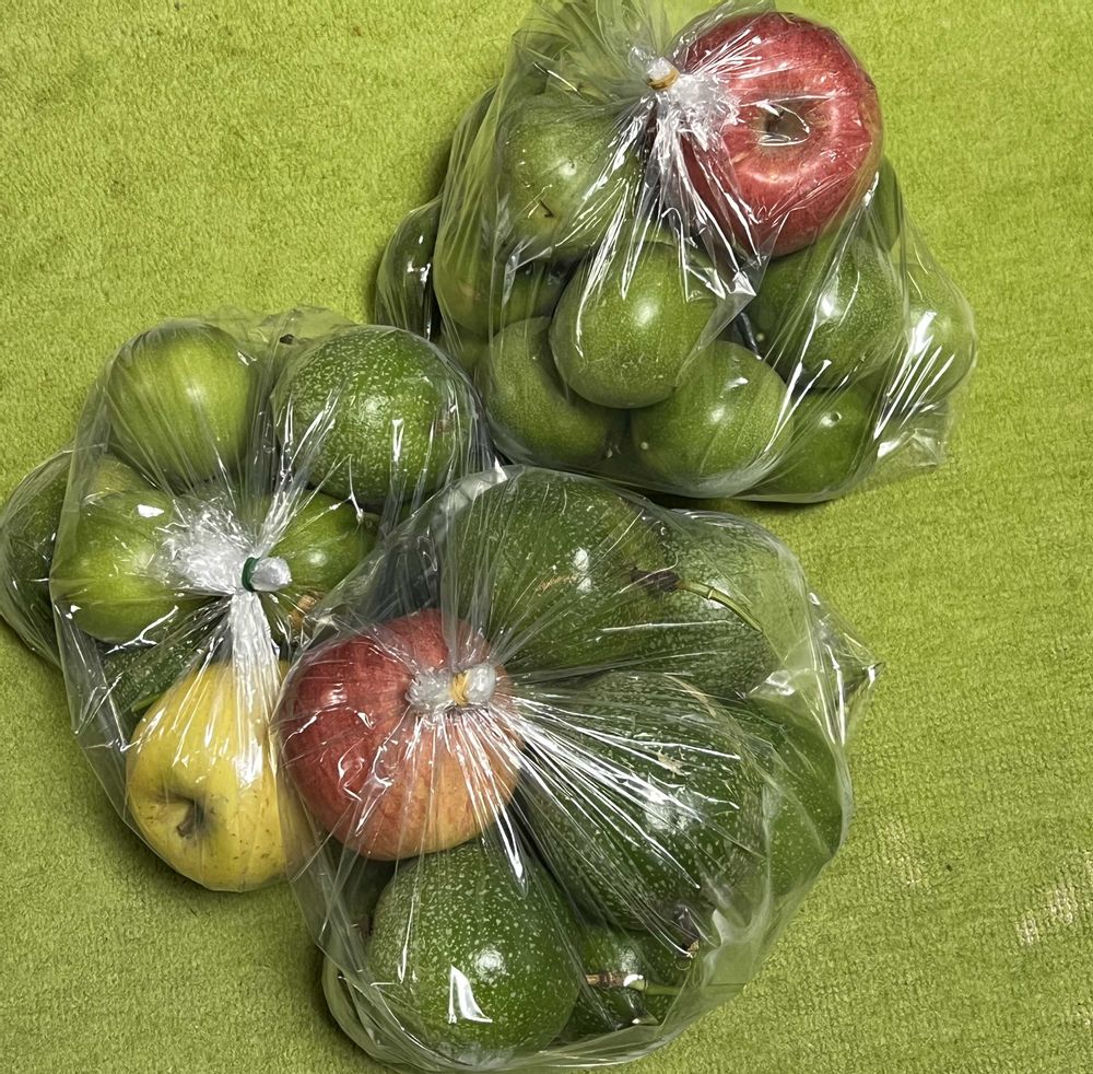 大きなパッションフルーツだけ、お歳暮で届いたりんごと一緒に袋に入れてりんご🍎のエチレンガスで、追熟するとか?しないとか?