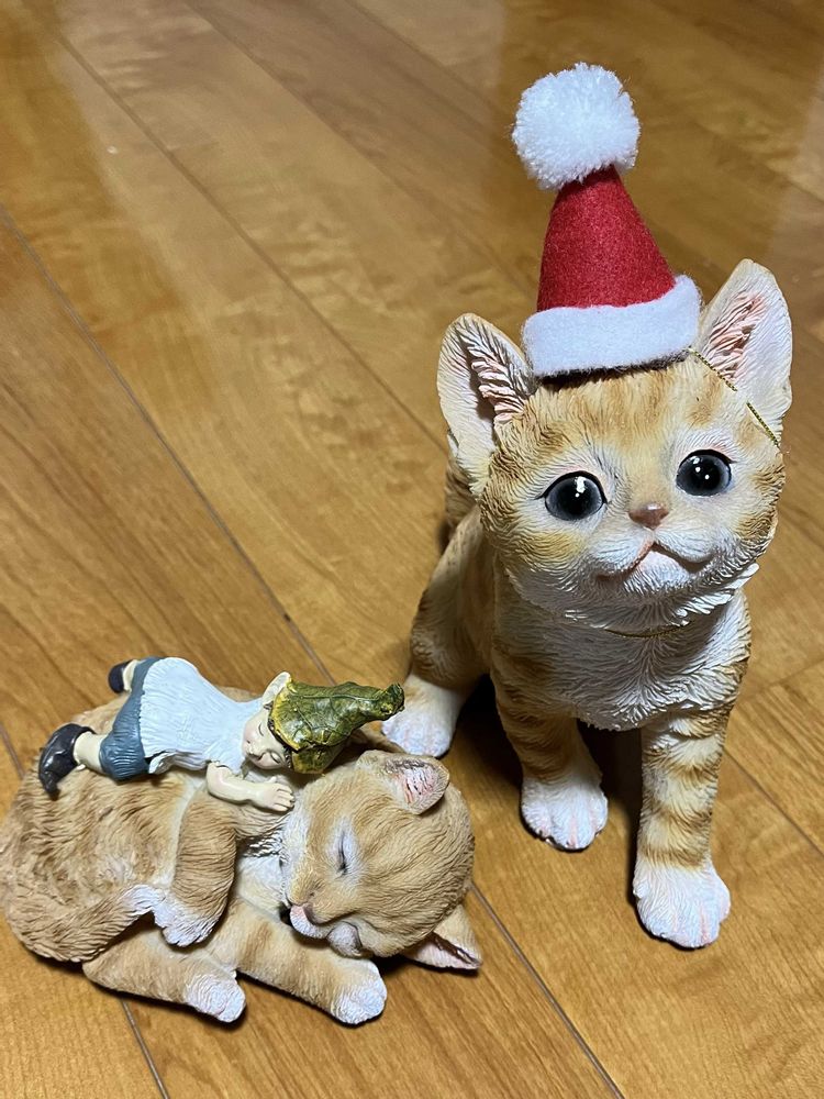④園芸店で目が合ってしまい、思わず買ったねこちゃんにサンタの帽子をかぶせました