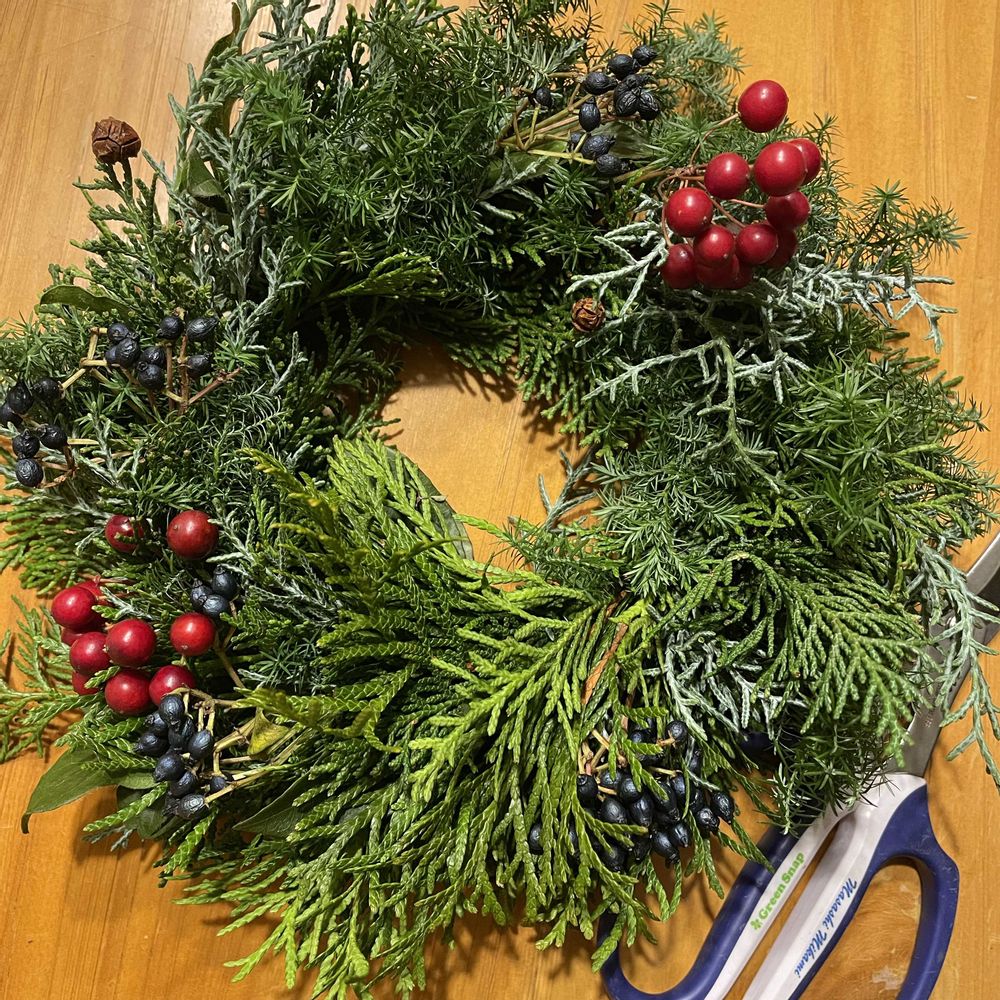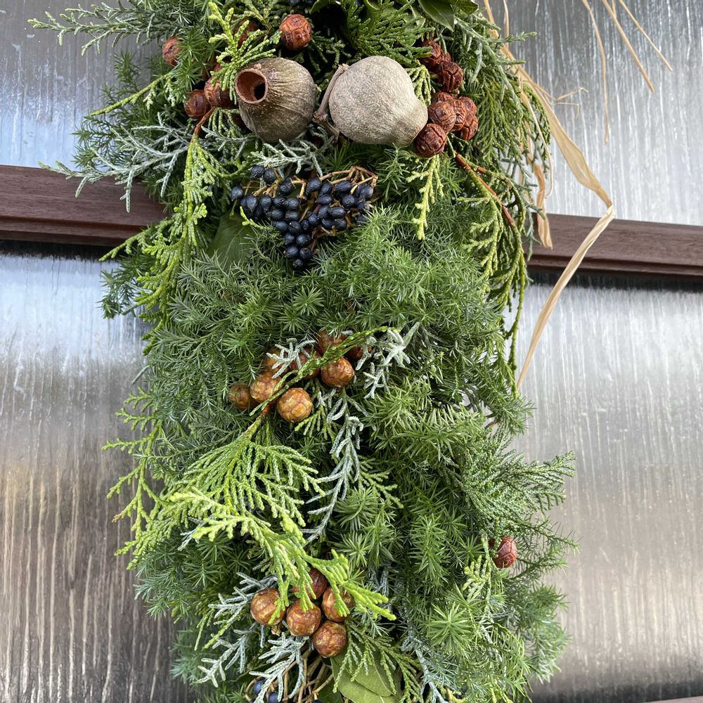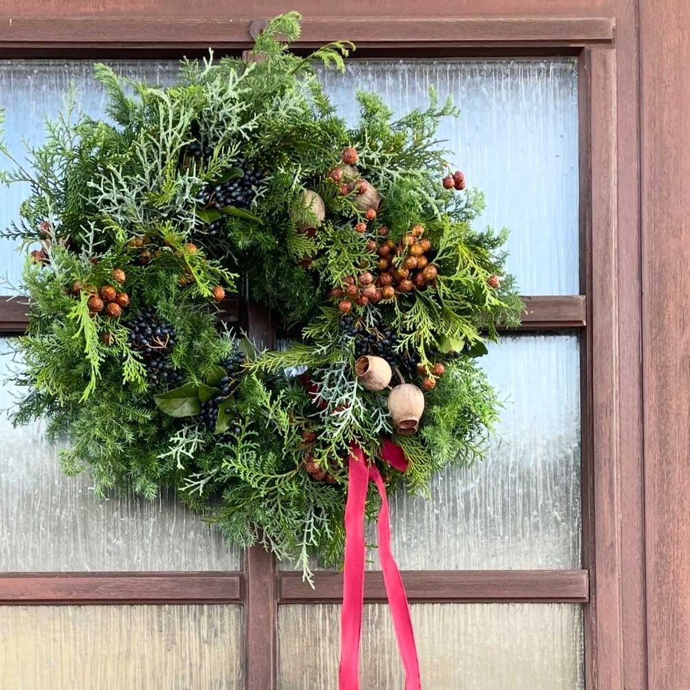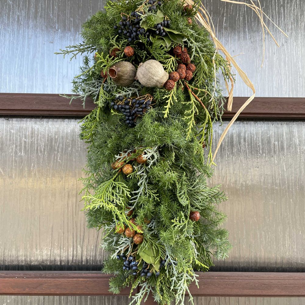 今年はユーカリベルガムナッツやヒバの実など大きな実の存在感がいい感じにෆ.*・゚