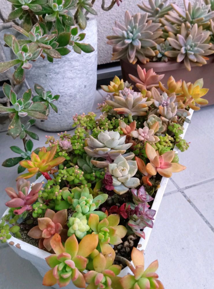 多肉との出会いは娘からの プレゼント🎁✨🌱✨ 少しずつ増えてきたので寄せ植え にも挑戦中💪 育てる楽しさ(ちょっと大変💦) 作る楽しさ💓 毎日、癒されてます😌