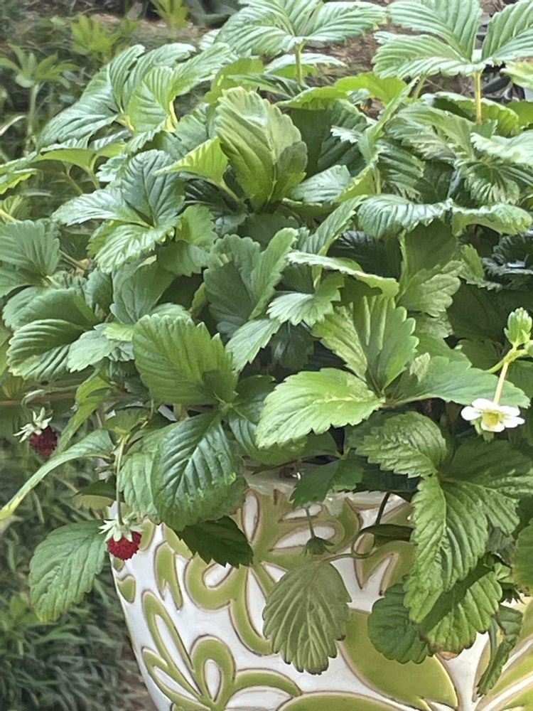 2pick...ウッドデッキに置いてた🍓いちご小さい白いお花が咲き小さい実が可愛い🍓