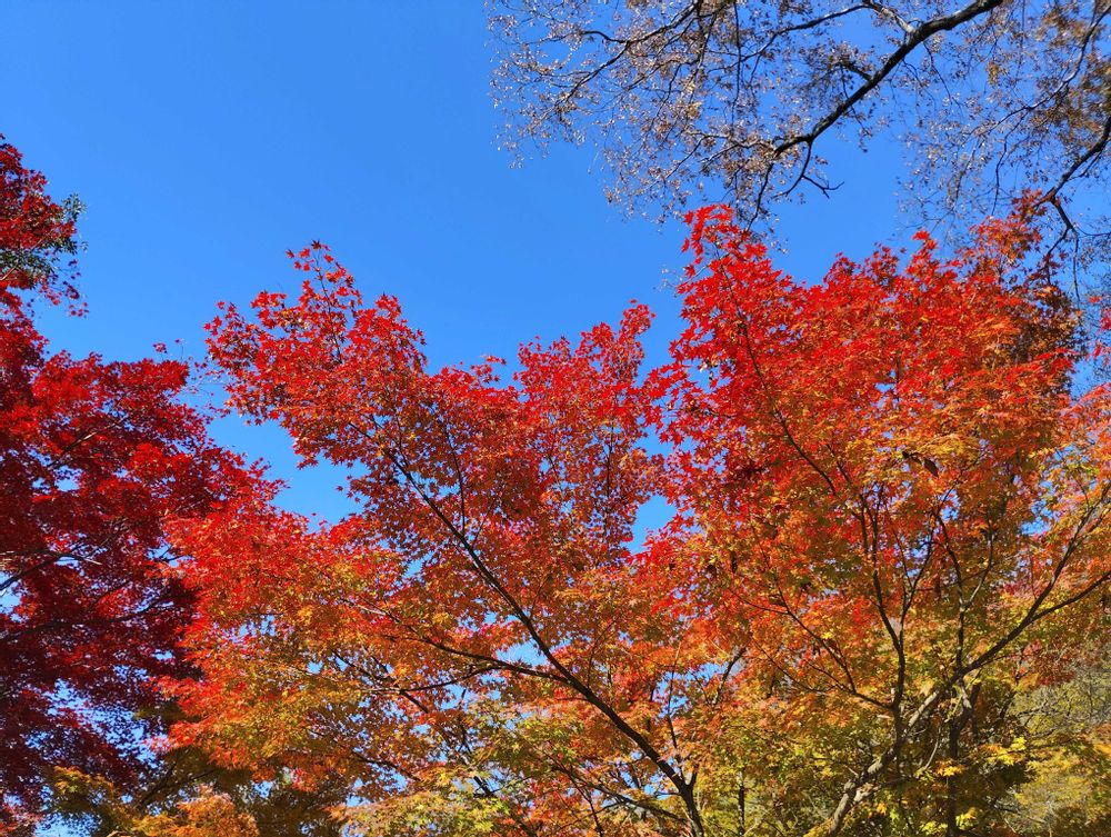 暖かくいいお天気で真っ青な空に紅葉🍁が映えてとても綺麗でした🎶︎🤍︎💖🎶︎🤍︎💖