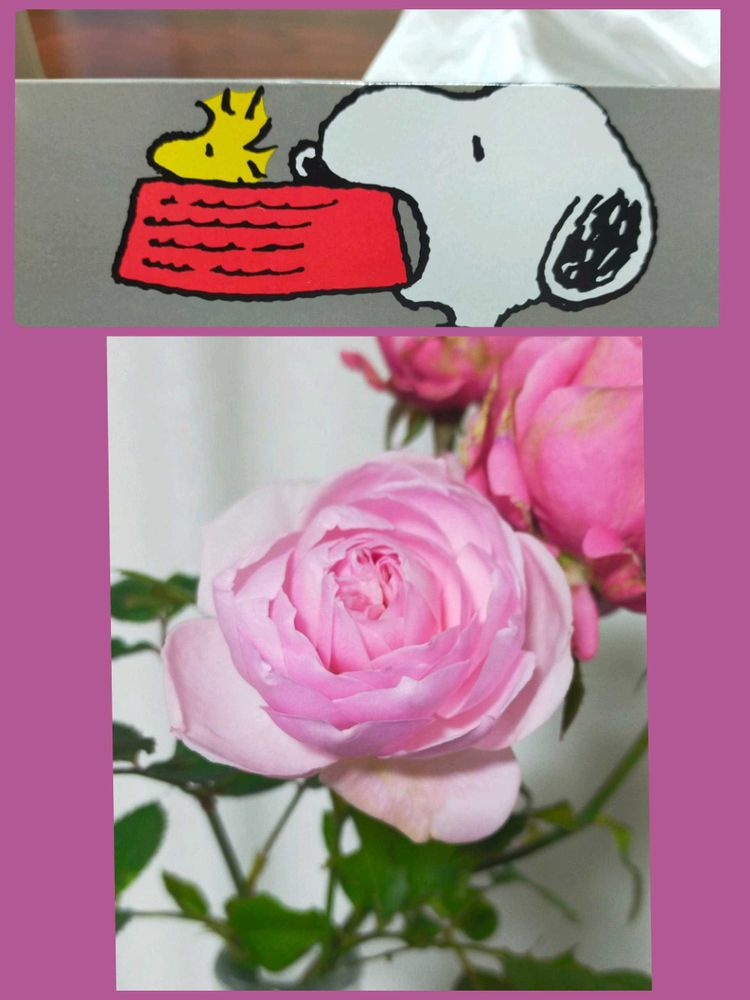 SCOTTIEティッシュのスヌーピーと庭の薔薇で参加します🥀