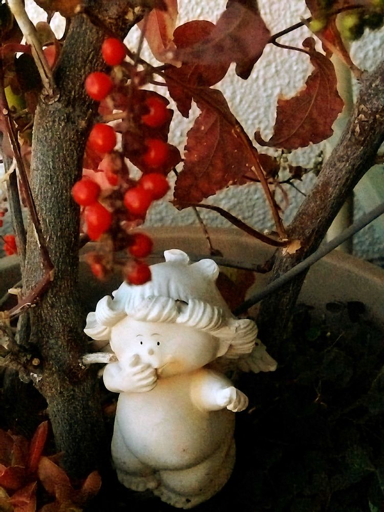 ベランダに咲く赤い実