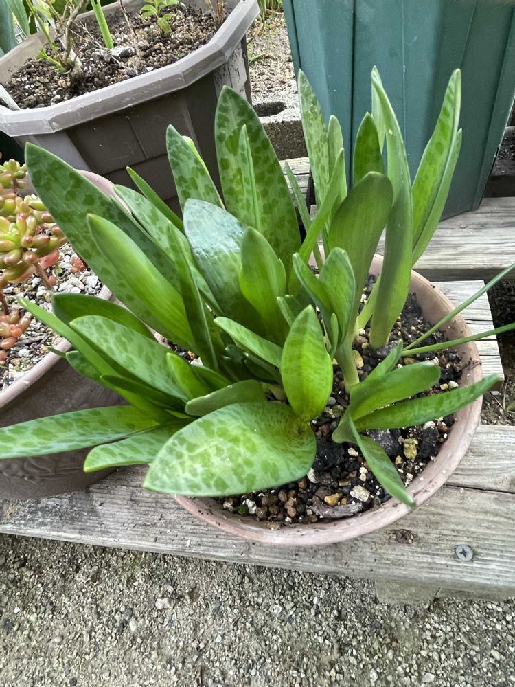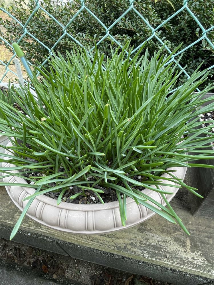 まだ芽が出てない頃、上に鉢が乗ってて真ん中あたりは黄ニラみたいな芽が出てたけど、今は緑に復活🌱