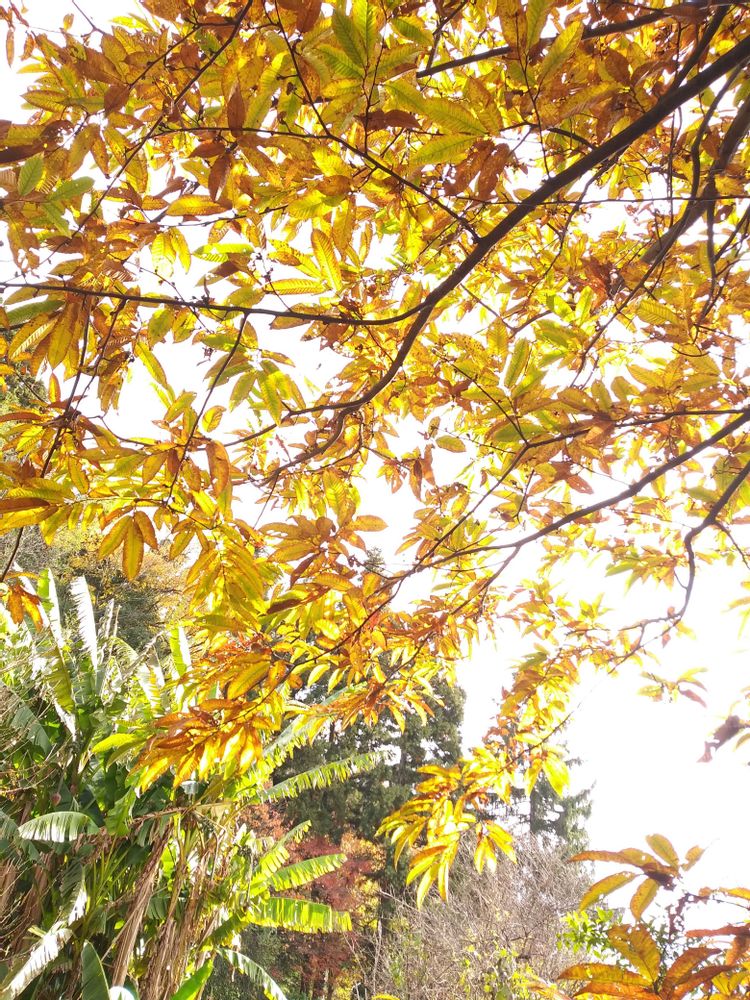 意外に栗の葉🌿🍂が光に翳すと鼈甲色で綺麗だと知りました😅