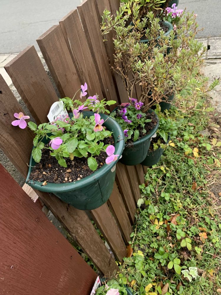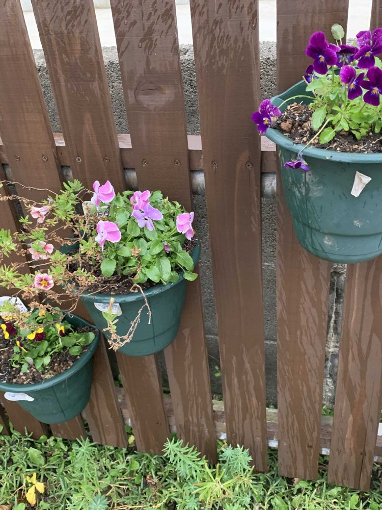 昨日、ビオラ見切り品だったので幾つかお迎えしてハンギングに、はめ込みました😂