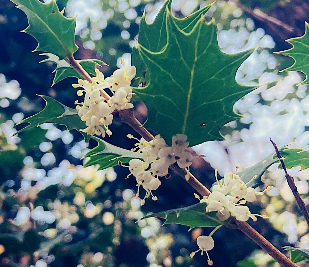 古来より、邪気や魔物を払う「魔除けの木」としても重宝され、庭木や生垣として植えられてきたヒイラギですが、特に興味深い点は、成長して老木になるにつれて、地面から遠い上部の葉のトゲの部分が徐々に無くなって葉の縁が丸くなる"異形葉性"という性質があるということ✨