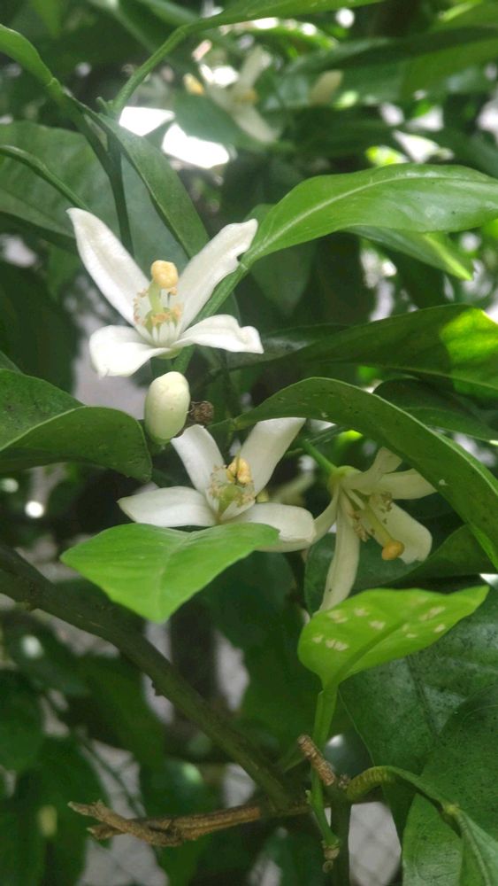 今日のお花 ウンシュウミカン(温州蜜柑)は 5月頃に星形の純白の花を咲かせます。