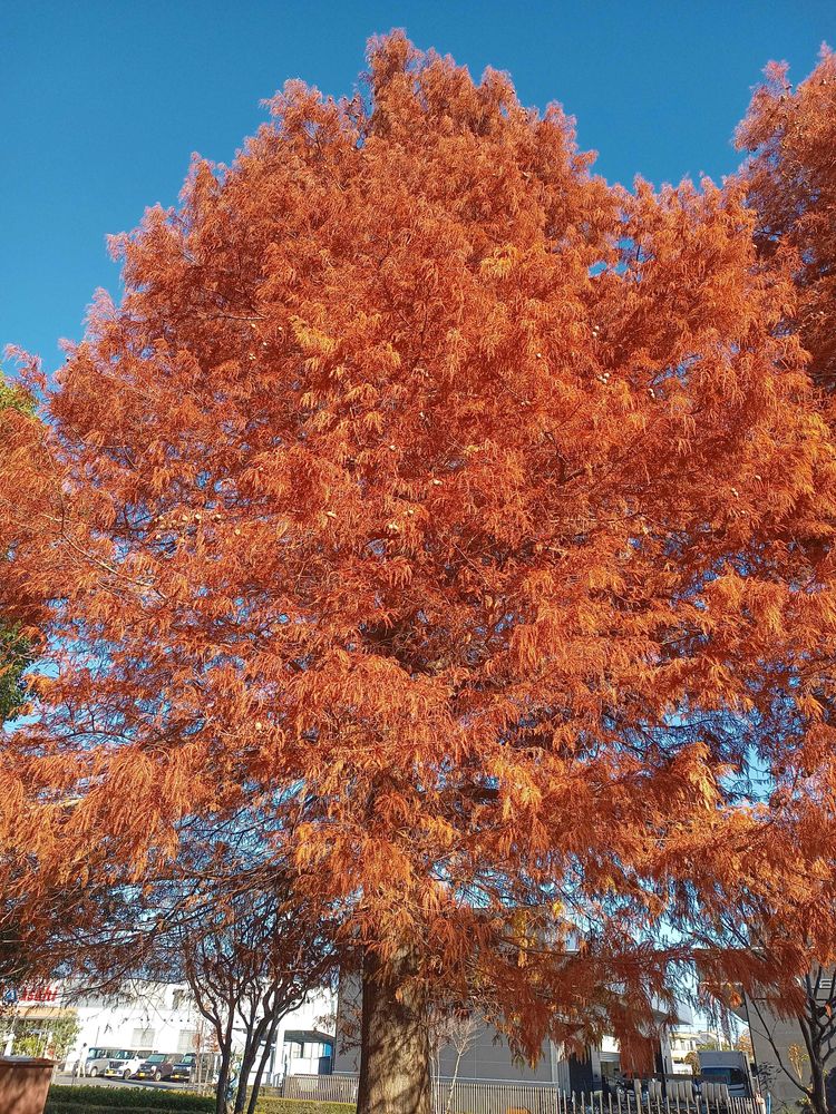 ラクウショウ、メタセコイアのオレンジ色青空に映えると綺麗です。🥰