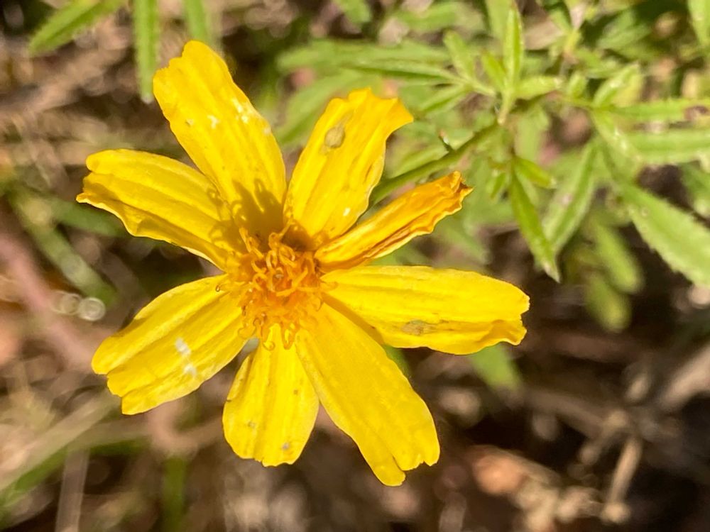 ユリオプスデージー?と思いましたが、花びらがちょっと違いそう。マリーゴールドの一重ちゃん?⚪︎×デージー?うむむ🧐