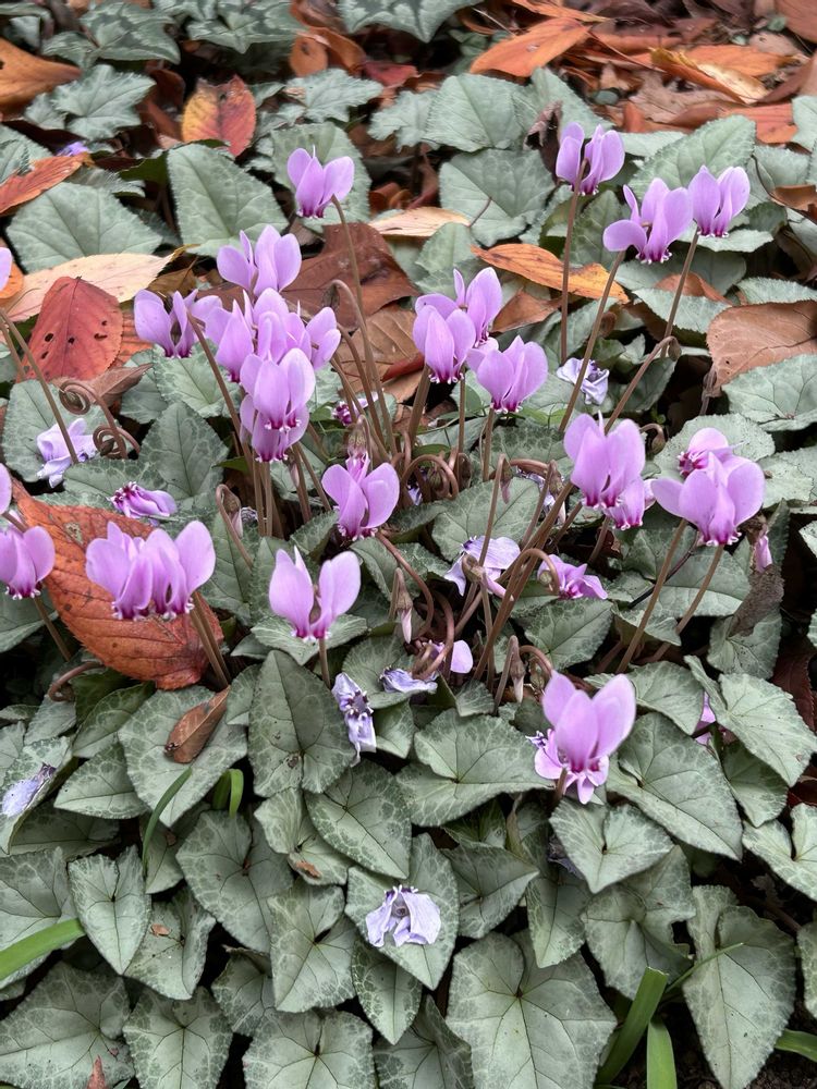植えられたのは原種シクラメンですか?道を挟んだ反対側にもいろんな形の葉っぱのシクラメンがありました 面白かったです タネが飛んだのでしょうか