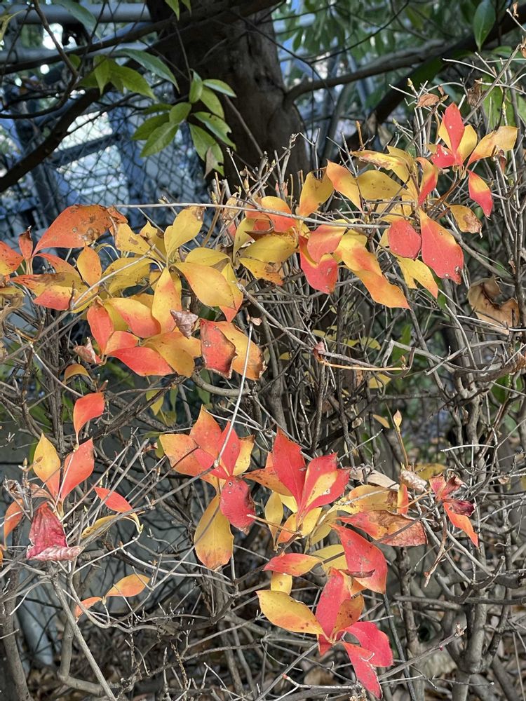 赤味が強いものが多いですが、散り始め残った葉はこんな色合いに。